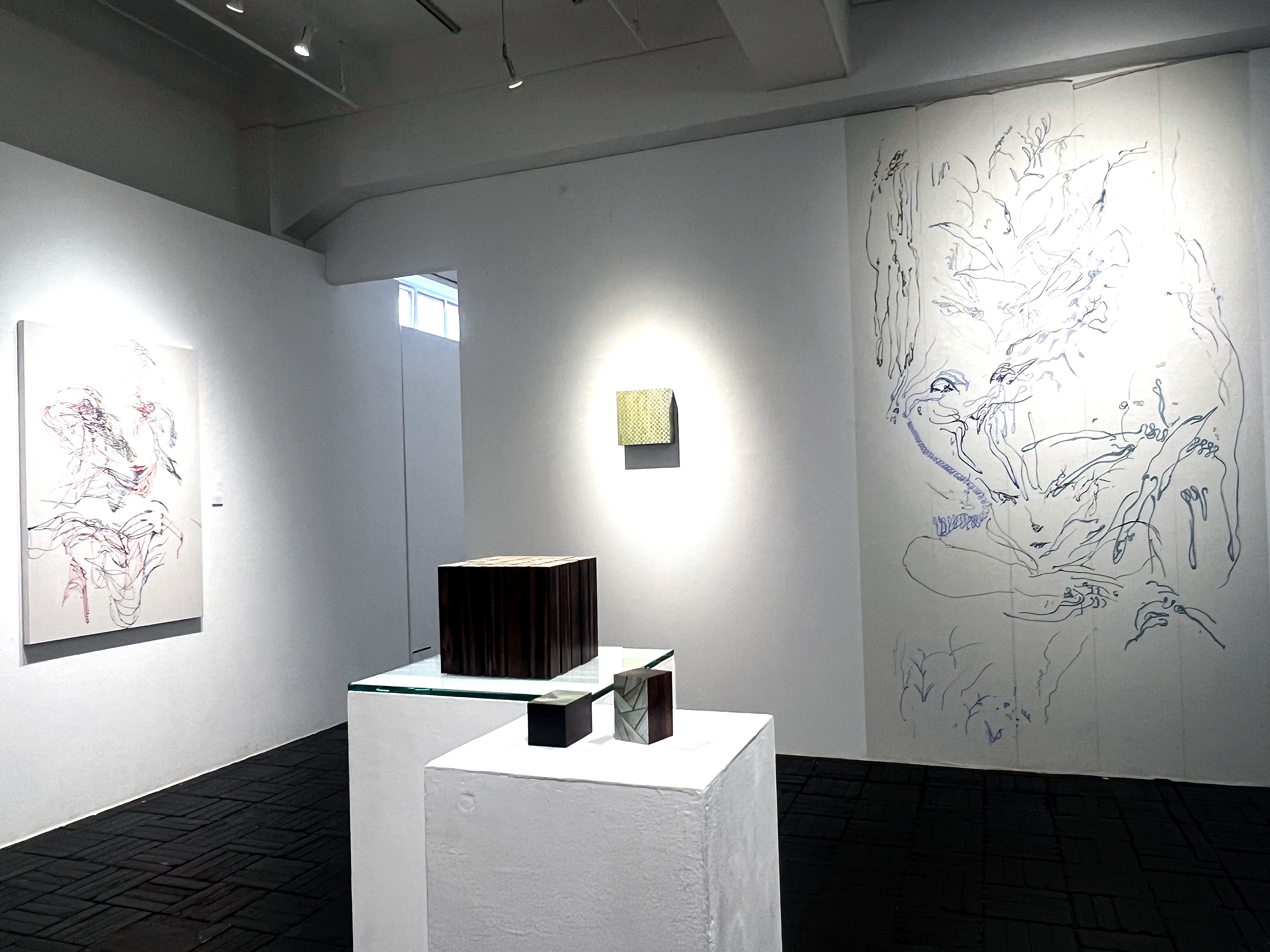 この度、京都芸術大学修士課程芸術専攻に在籍する二名、小橋美花と田中里奈の二人展を開催いたします。工芸を専門分野とし、麦わらを用い制作する小橋と、日本画を専攻し線表現を追求し、制作する田中。工芸と日本画、立体と平面、という一見交わらない二つの礎を持ちながら制作を行ってきた二者。その二人が出会い、制作する中で生まれた逡巡や作品上での融合、また触れて離れる様な距離感を是非、作品と展示空間から感じ取っていただけたらと思います。